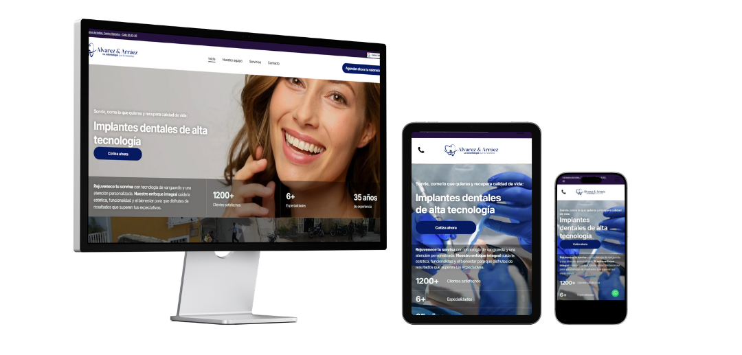 Álvarez Arráez Odontología cuenta con una página web profesional y moderna, diseñada para transmitir confianza y calidad en sus servicios odontológicos.